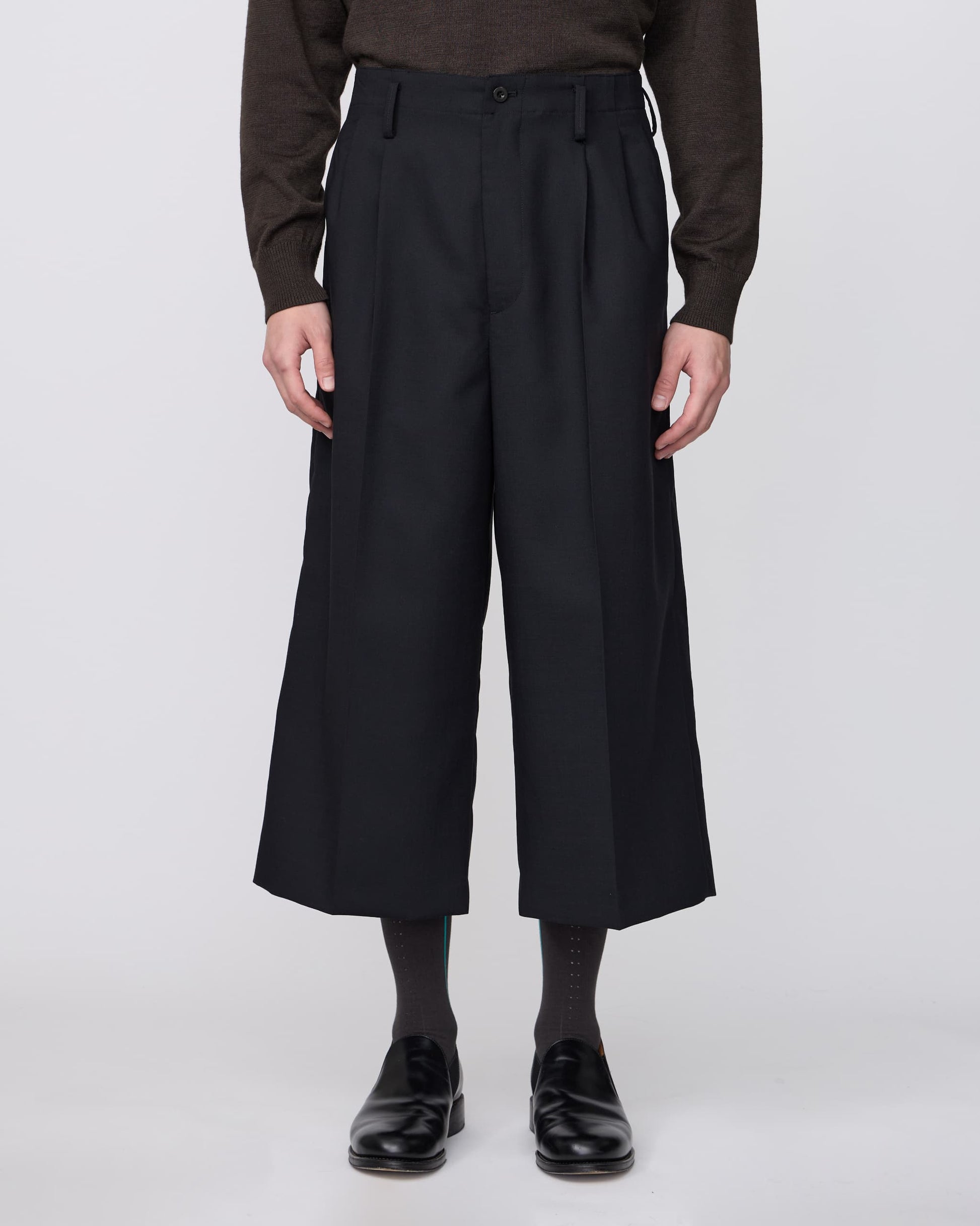 二重織のサマーウールを使用した、前裏付きクロップドワイドトラウザーズ